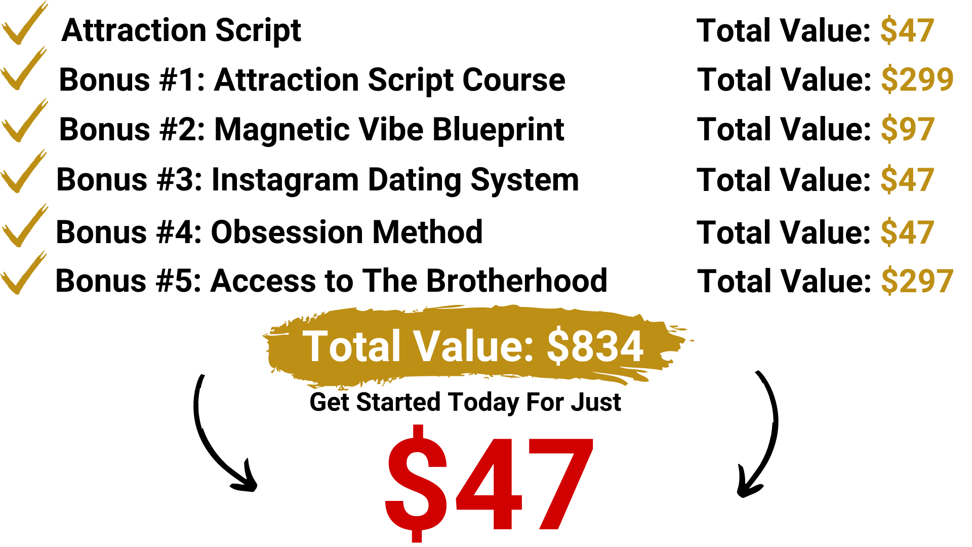 I'm sending you a digital copy of my "Attraction Script - 91 Dark Psychology Scripts For Making Women Obsessed With You”, (which normally sells at $197.00 and CAN’T be found anywhere else than on this website) for just $47.00.